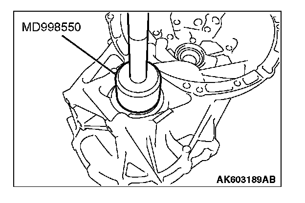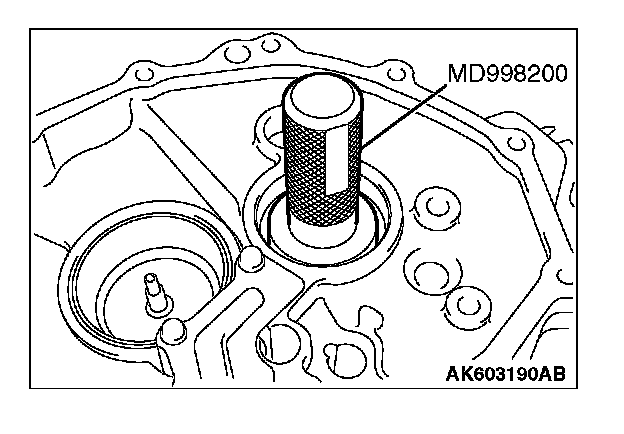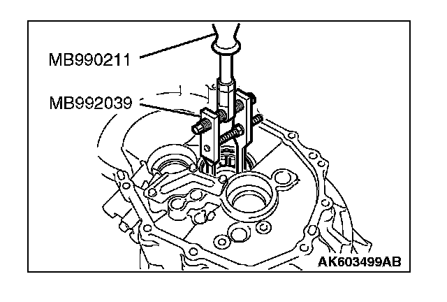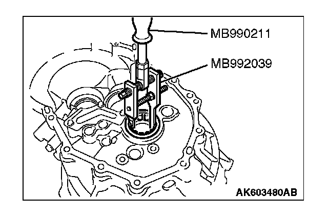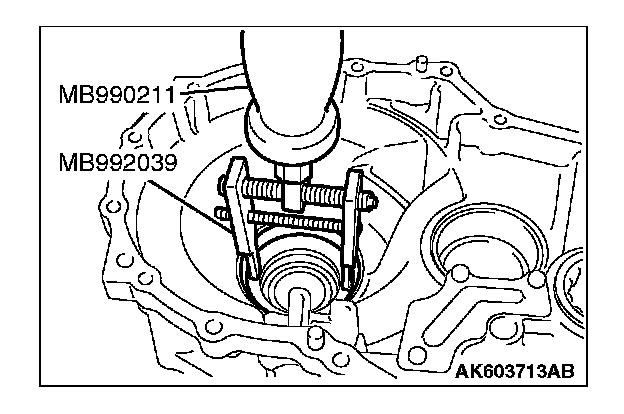 1. Using special tools MB990211 and MB992039, remove the cylindrical roller bearing (outer race).