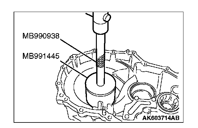 Using special tools MB991445 and MB990938, install the tapered roller bearing outer race.