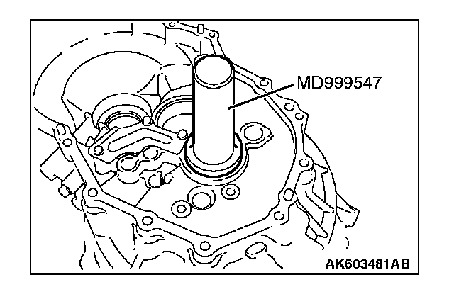 Using special tools MD999547, install the cylindrical roller bearing (outer race).