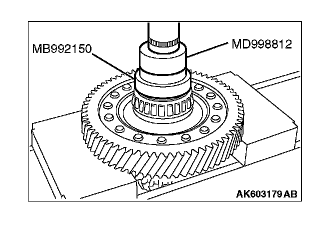 Using special tools MD998812 and MB992150, install the tapered roller bearing inner race.