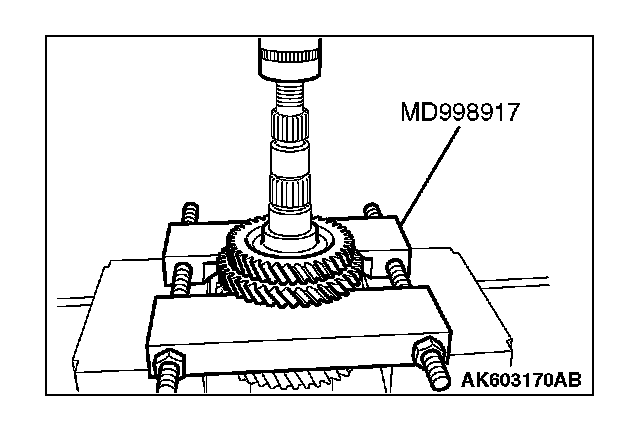 Using special tool MD998917, support the 2nd gear and remove the 3rd drive gear and 2nd gear.