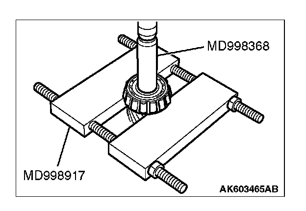 Using special tool MD998917 and MD998368, support the tapered roller bearing Inner race and remove the tapered roller bearing Inner race.