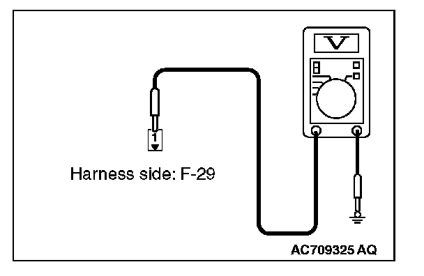 4. Measure the voltage between rear window defogger connector F-25 terminal No.1 and ground.