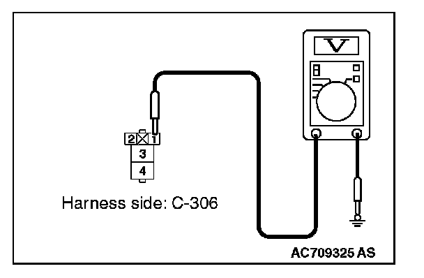 1. Disconnect rear window defogger relay connector C-306, and measure the voltage at the junction block side.