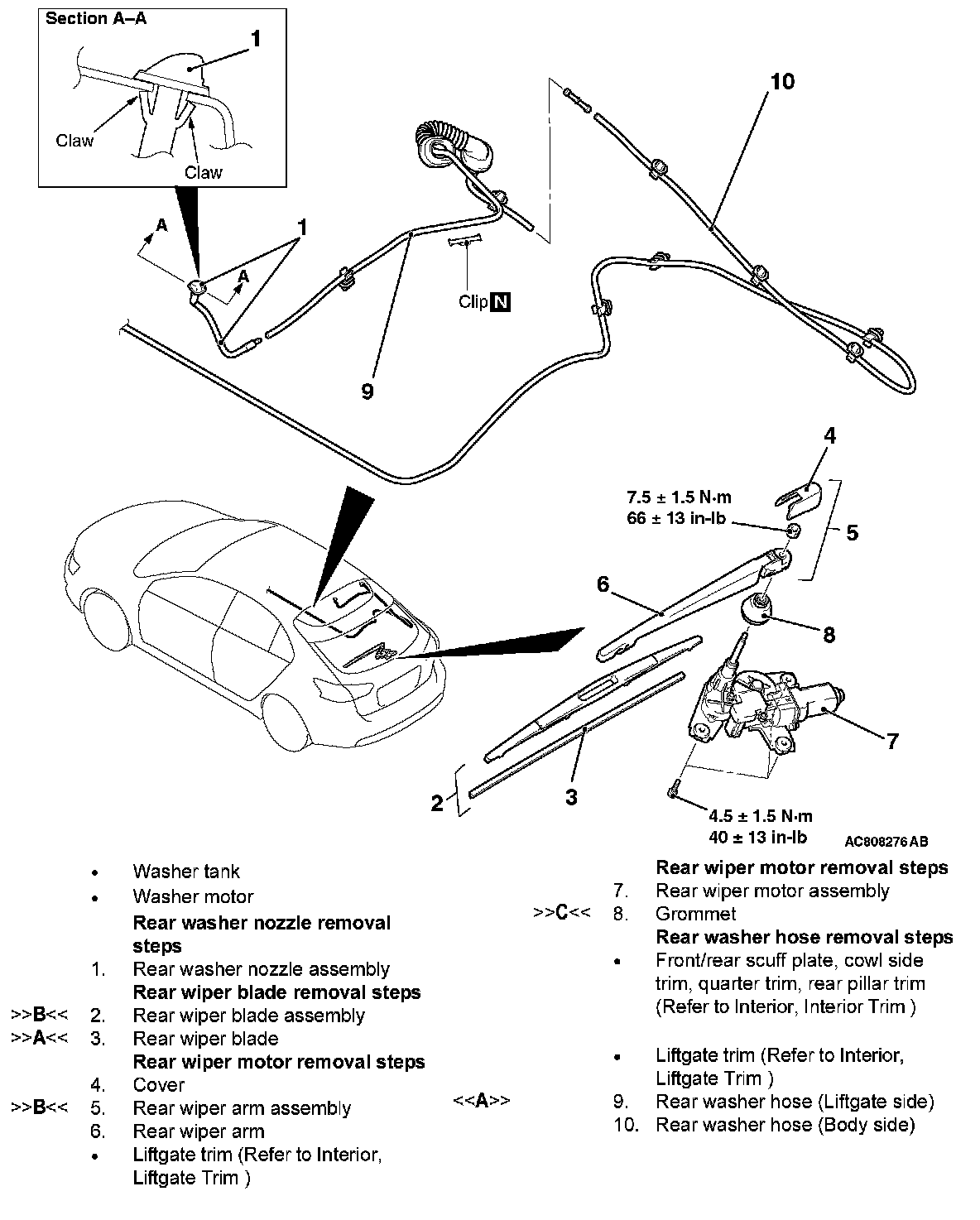 REAR WIPER AND WASHERREMOVAL AND INSTALLATION