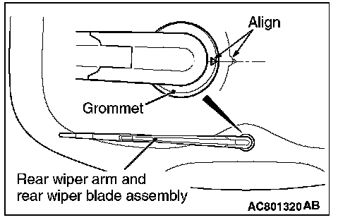 Install so that the mating mark on the grommet (triangle) is aligned with the mark on the Liftgate glass.