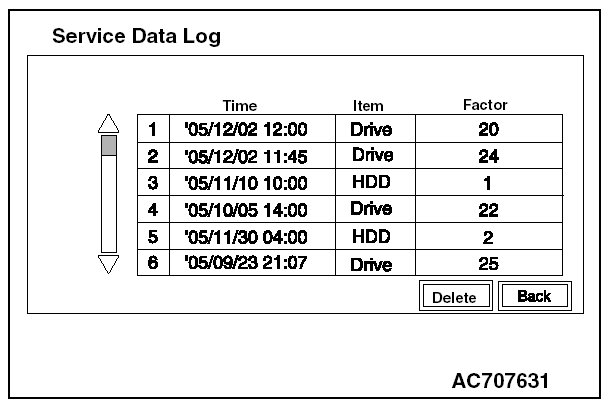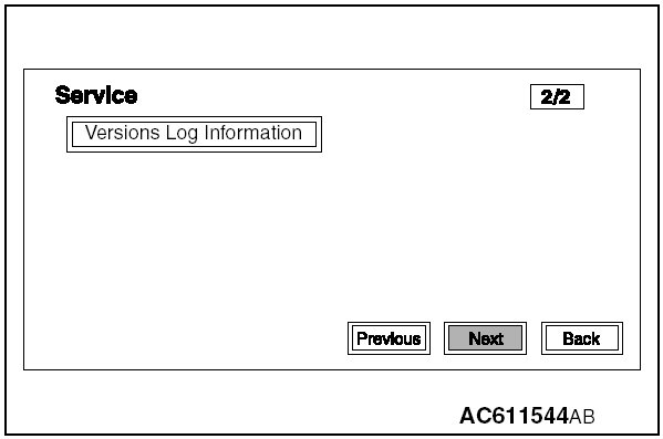- If "Back" button is selected on "Service" screen, the service mode will terminate and then return to the previous screen.