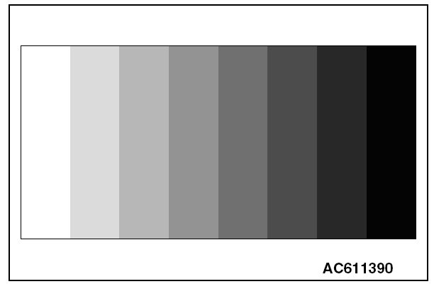 3. When "Enter" is pressed on the navigation unit joystick while the eight color bars are shown, gray scale will be displayed with a 16-step gradation.