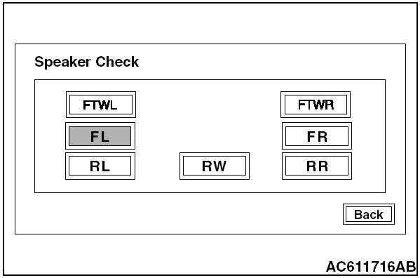 - During the test, only the selected speaker sounds. If "Back" is selected during the test, the test tone will disappear.