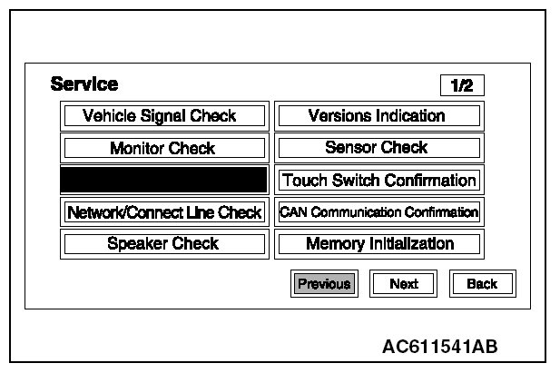 1. Select "Vehicle Signal Check" on "Service" screen.