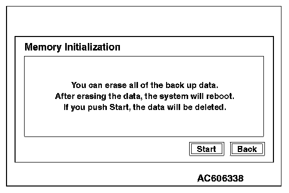 2. If you select "Start" on "Memory Initialization" screen, the settings such as registered locations and music server will be erased (initialized) from the memory.