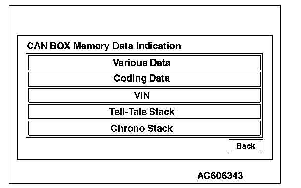 4. If "CAN BOX Memory Data Indication" is selected on "CAN Communication Confirmation" screen, "CAN BOX Memory Data Indication" will be displayed.