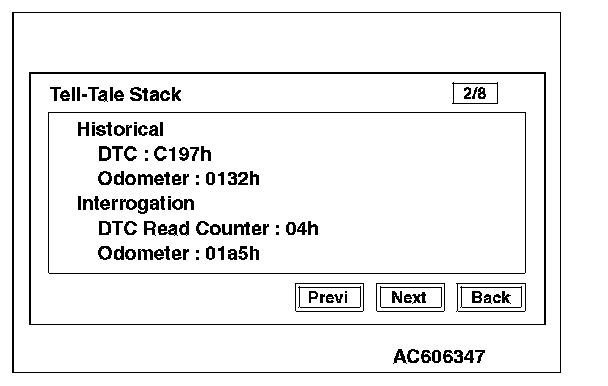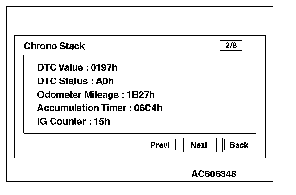 5. If any item is selected on "CAN BOX Memory Data Indication" screen, its relevant information is displayed.