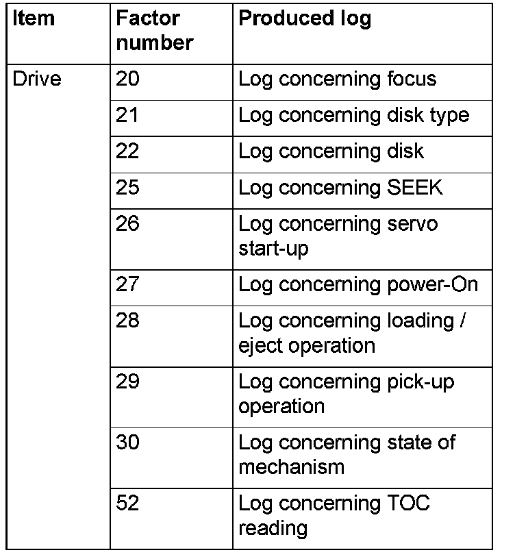 EACH LOG INFORMATION: FACTOR CODE TABLE