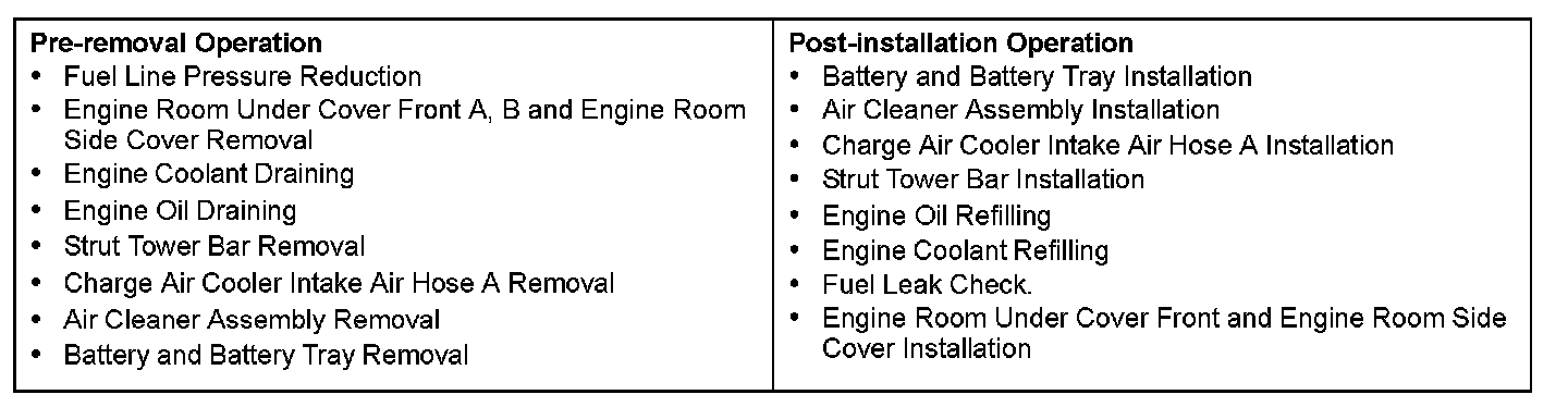 Pre-removal & Post-installation Operation: