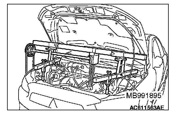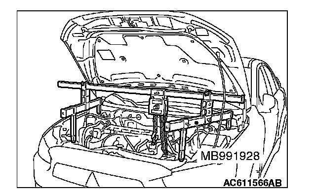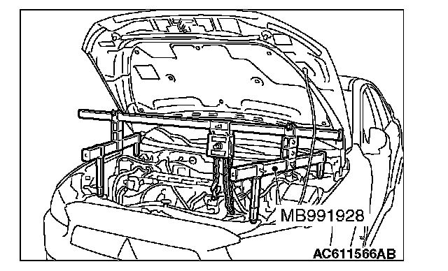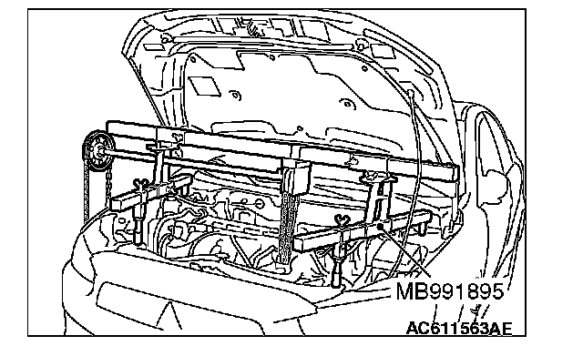 6. Install special tool MB991928 or MB991895 which is used during installation of transaxle assembly to hold the engine assembly.