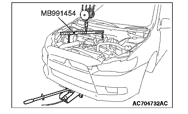 2. Remove special tool MB991928 or MB991895 which was installed for supporting the engine assembly when the transaxle assembly was removed.