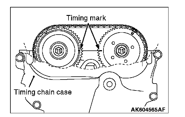 NOTE: If the timing chain is extended more than the specified value, the oil pump chain could possibly be extended, too. The oil pump chain, therefore, must be replaced when the timing chain is replaced.