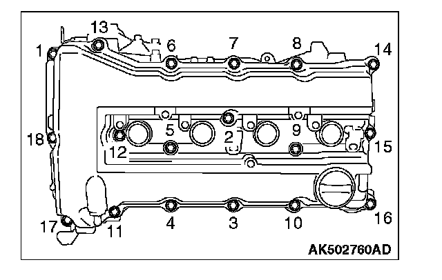 Install the cylinder head cover within 3 minutes of applying the liquid gasket.