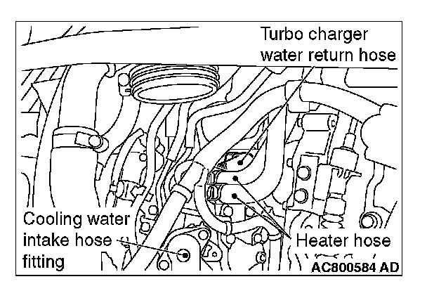 4. Disconnect the turbocharger water return hose and drain the engine coolant in the water jacket.