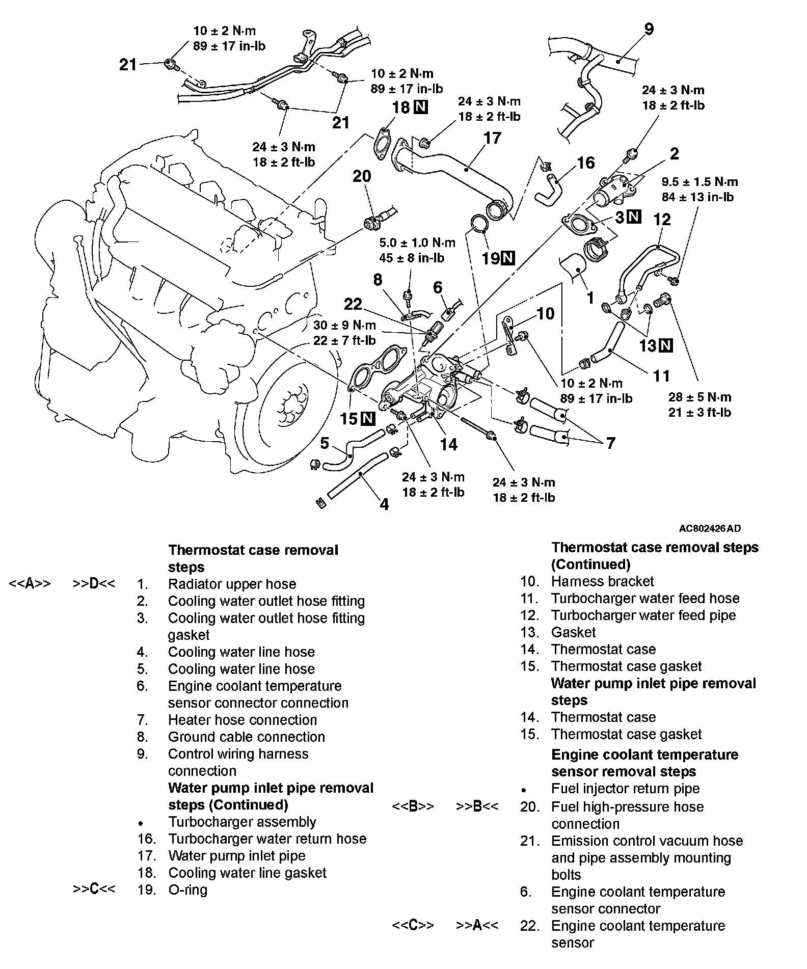 WATER HOSE AND WATER PIPEREMOVAL AND INSTALLATION [2.0L ENGINE]
