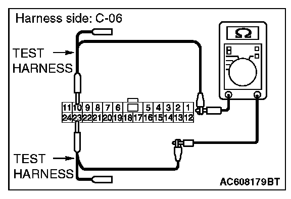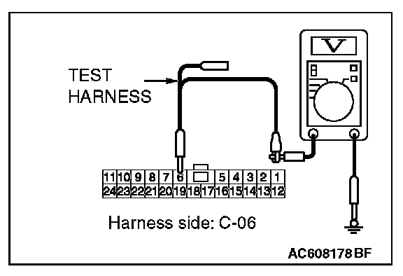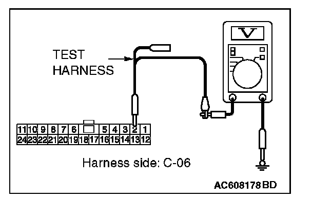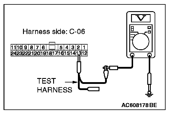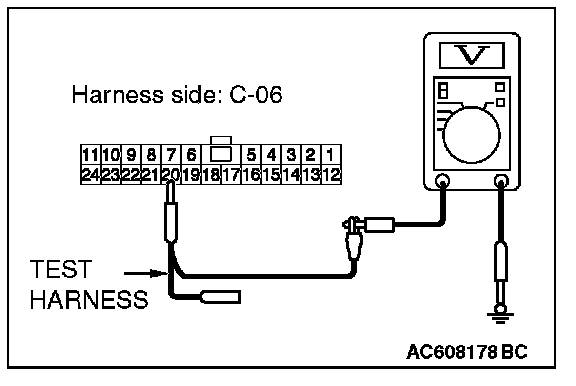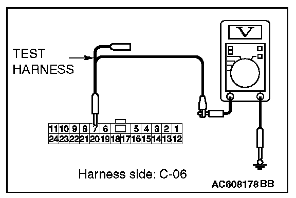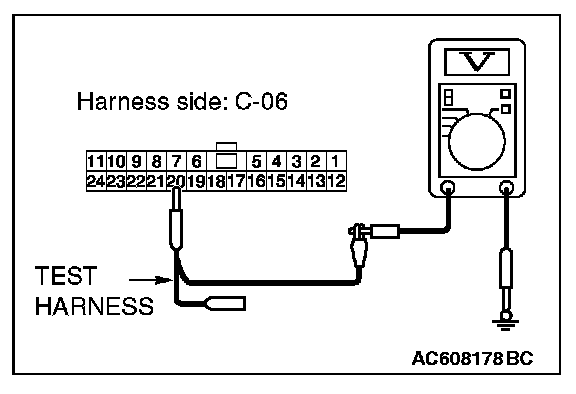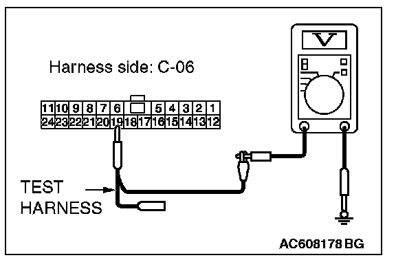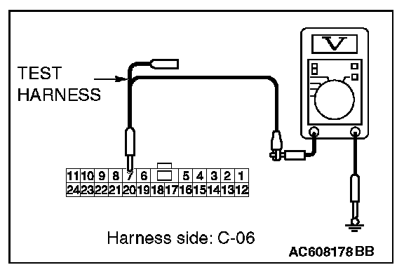 STEP 24. Check the wiring harness between joint connector (CAN1) C-06 and ETACS-ECU connector C-301 for a short to power supply. Measure the voltage at joint connector (CAN1) C-06.