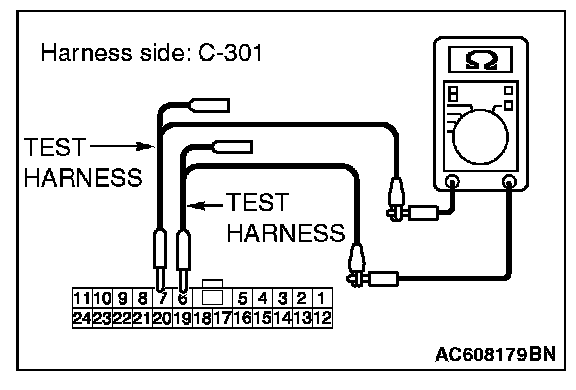 1. Disconnect ETACS-ECU connector C-301, and check that there is continuity at the harness side of ETACS-ECU.