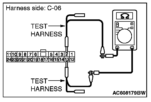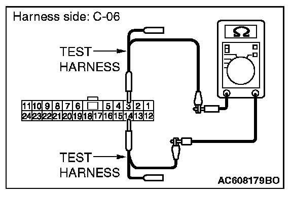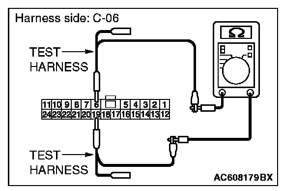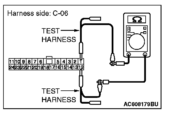 STEP 36. Check the wiring harness between joint connector (CAN1) C-06 and EATCS-ECU connector C-301 for line-to-line short. Measure the resistance at joint connector (CAN1) C-06.