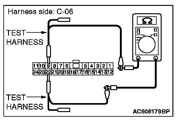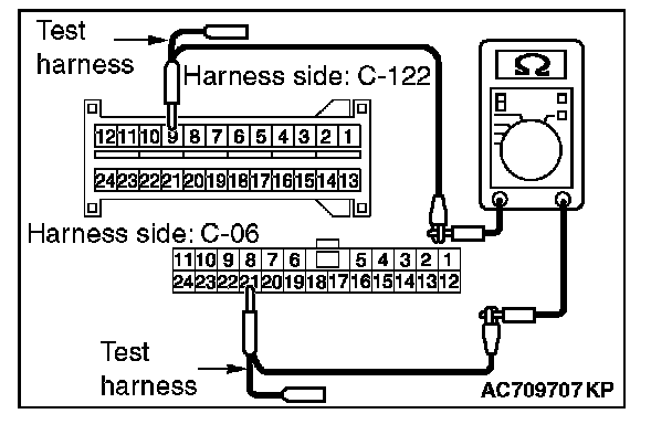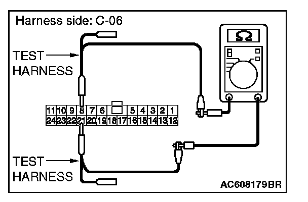 STEP 29. Check the wiring harness between joint connector (CAN1) C-06 and SRS-ECU connector C-122 for line-to-line short. Measure the resistance at joint connector (CAN1) C-06.