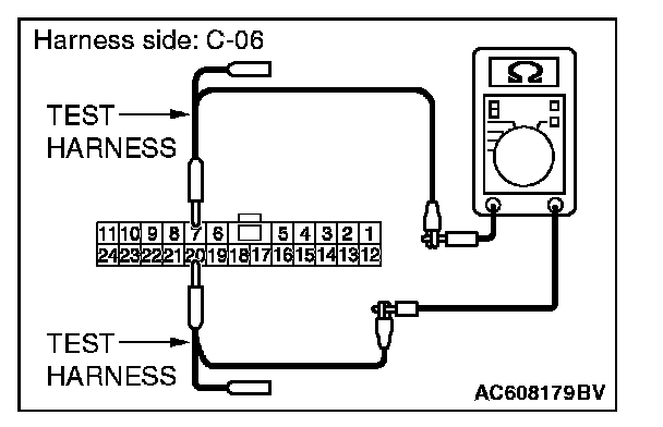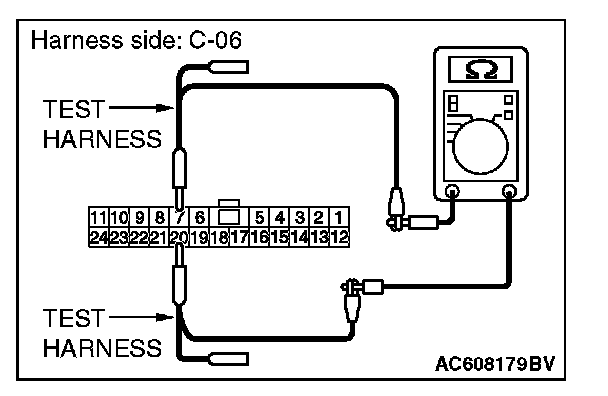 STEP 32. Check the wiring harness between joint connector (CAN1) C-06 and A/C-ECU connector C-20 for line-to-line short. Measure the resistance at joint connector (CAN1) C-06.