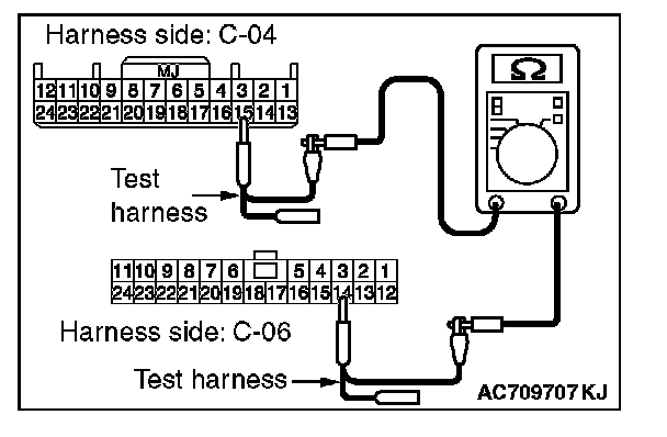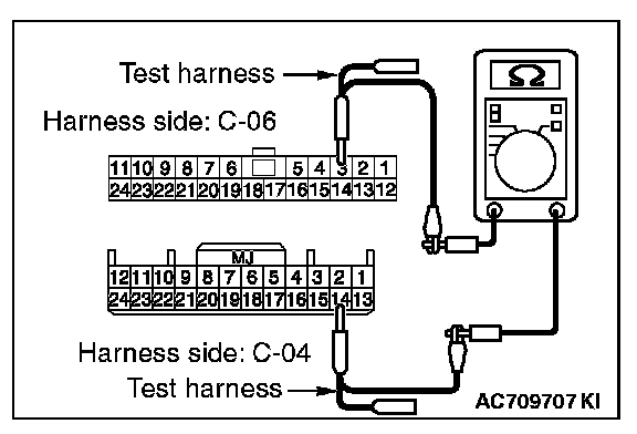 STEP 26. Check the wiring harness between joint connector (CAN1) C-06 and combination meter connector C-04 for line-to-line short. Measure the resistance at joint connector (CAN1) C-06.