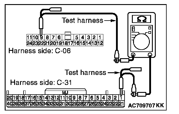 STEP 27. Check the wiring harness between joint connector (CAN1) C-06 and KOS-ECU connector C-31 for line-to-line short. Measure the resistance at joint connector (CAN1) C-06.