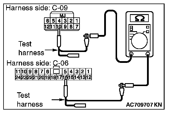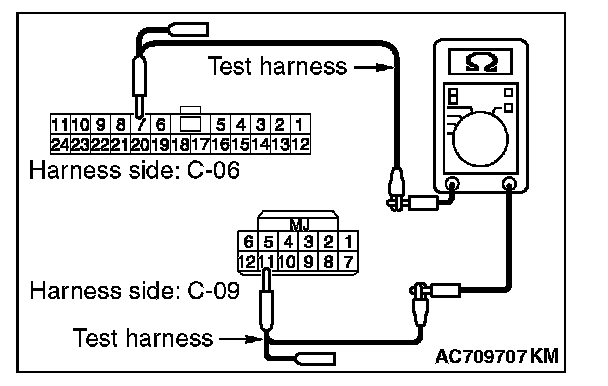 STEP 28. Check the wiring harness between joint connector (CAN1) C-06 and WCM connector C-09 for line-to-line short. Measure the resistance at joint connector (CAN1) C-06.