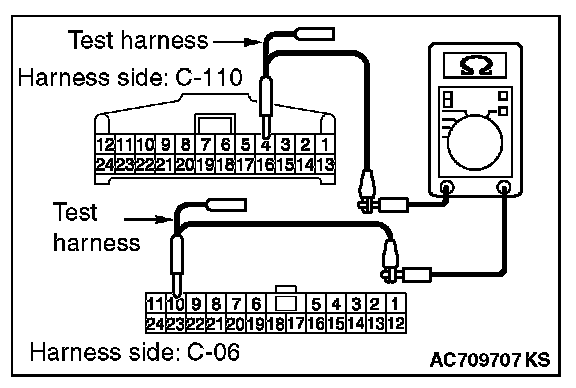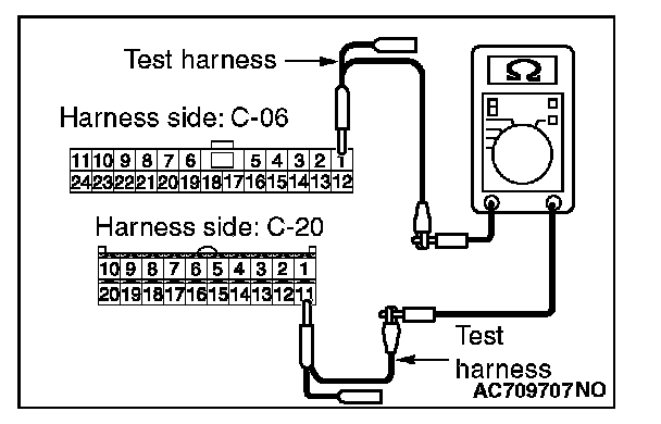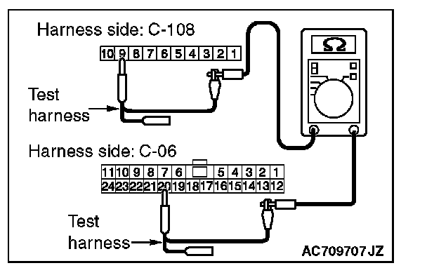 2. Check the wiring harness between joint connector (CAN1) C-06 (terminal 6) and ETACS-ECU connector C-301 (terminal 6)
