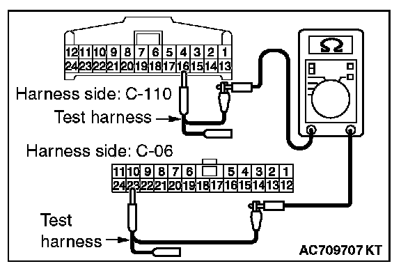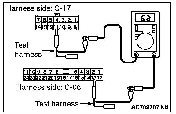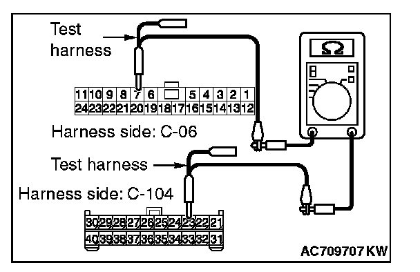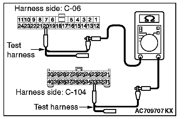 3. Check the wiring harness between joint connector (CAN1) C-06 (terminal 19) and ETACS-ECU connector C-301 (terminal 7)
