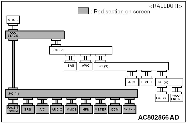 3. Diagnose CAN bus lines, and check if the scan tool MB991958 screen is as shown in the figure.