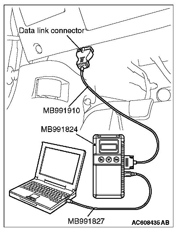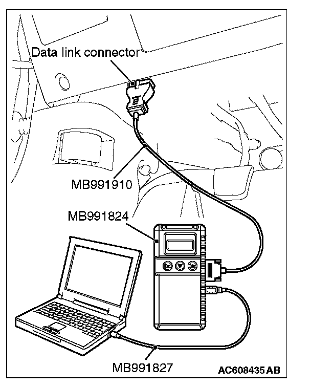 - To prevent damage to scan tool MB991958, always turn the ignition switch to the "LOCK" (OFF) position before connecting or disconnecting scan tool MB991958.