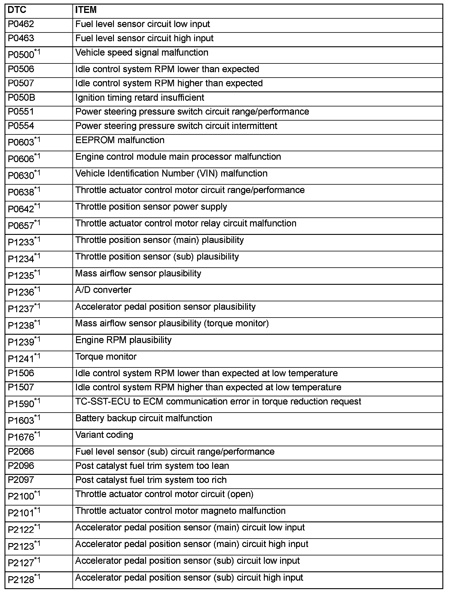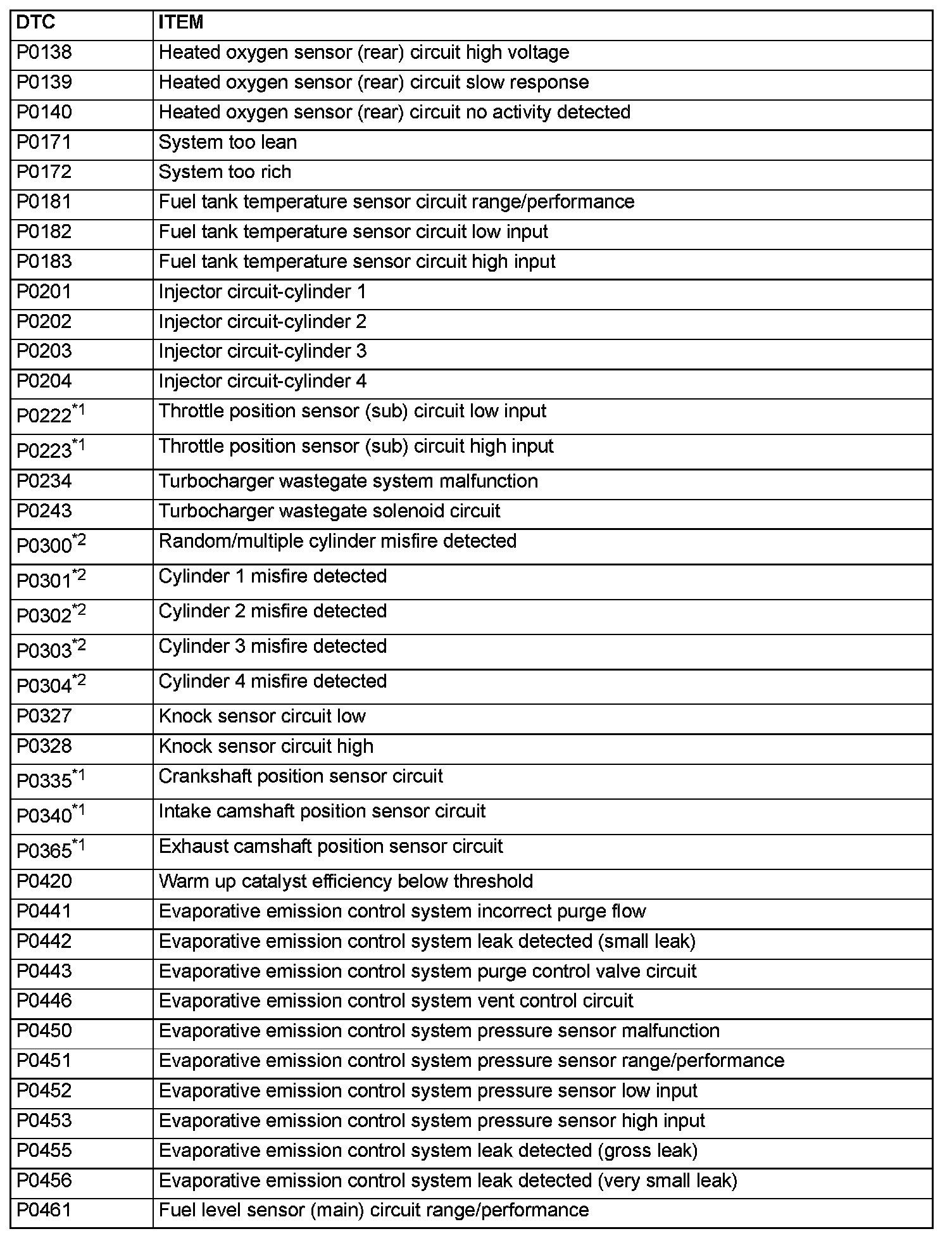 - The codes marked with a "*2" in the diagnosis code number column have the following two conditions for illuminating the Malfunction Indicator Lamp (SERVICE ENGINE SOON or Check Engine Lamp).