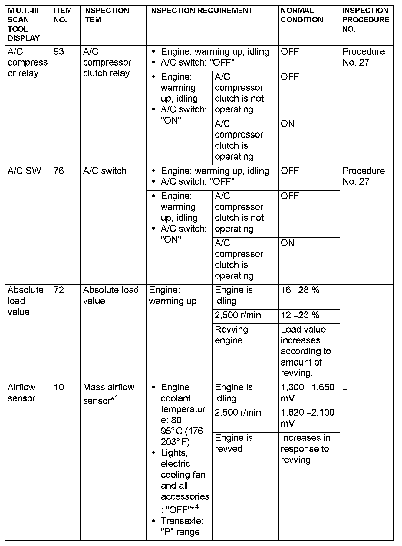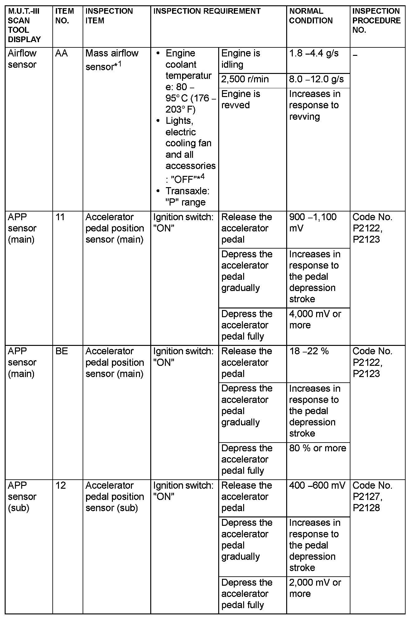 - *1: In a new vehicle [driven approximately 500 km (311 mile) or less], the mass airflow sensor output value is sometimes 10% higher than the standard value.