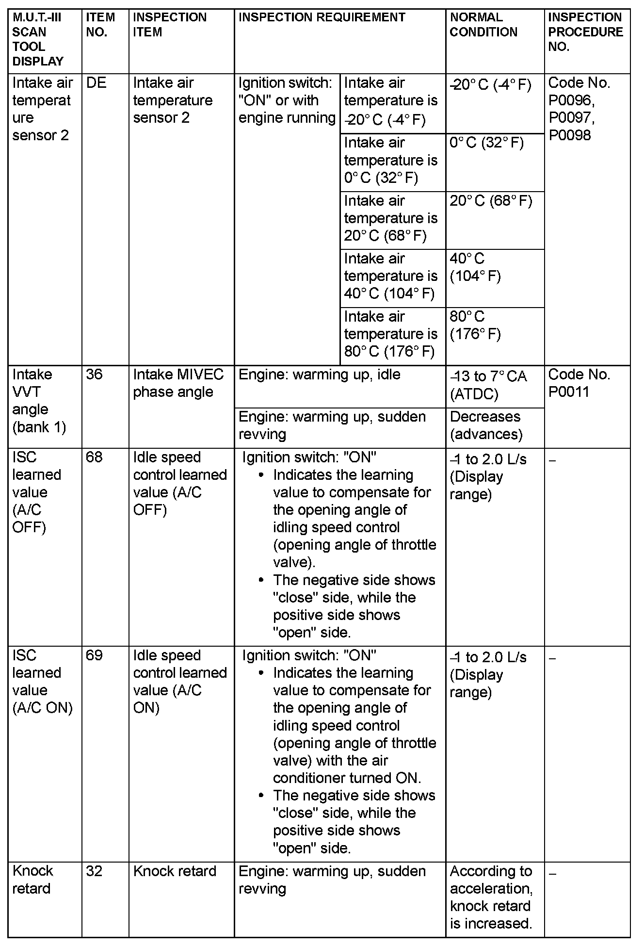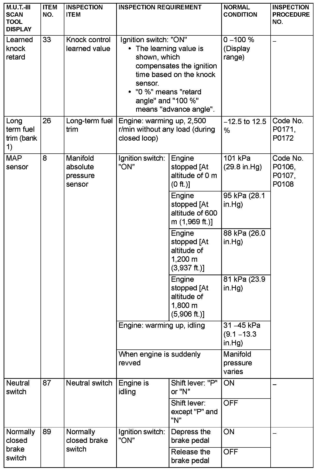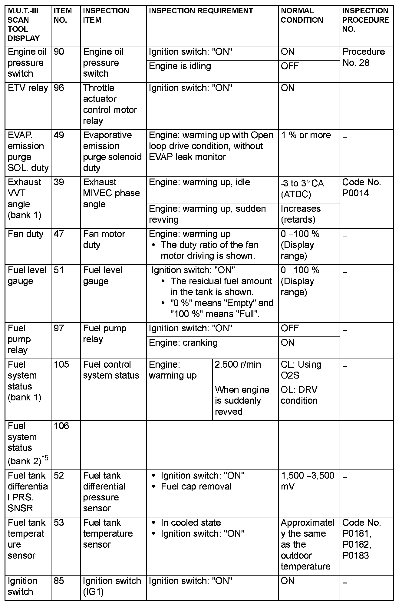 - *5: Data items are displayed on scan tool display, but the in-line 4 engine is not applicable and its data is displayed as "N/A".