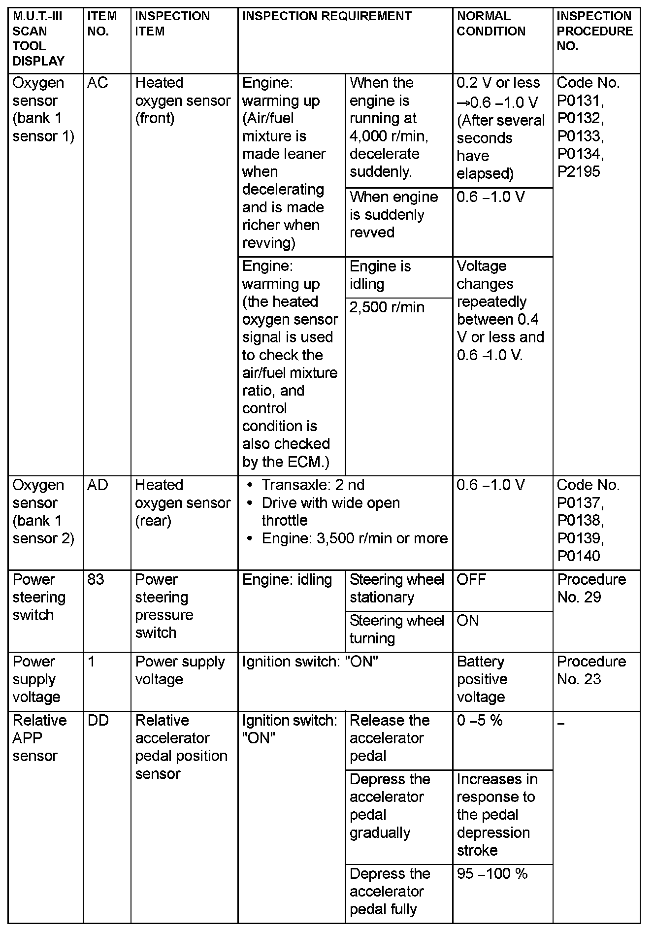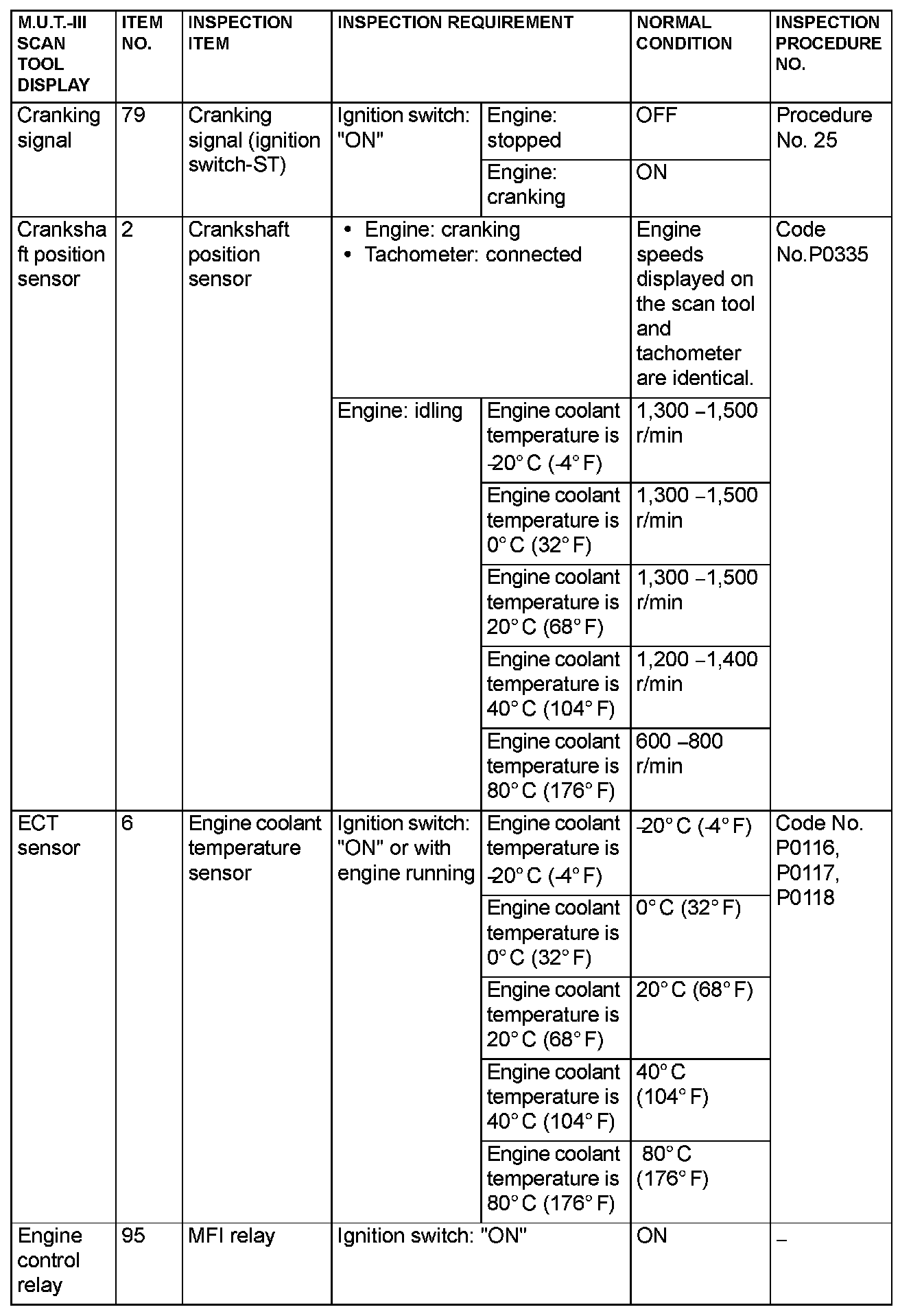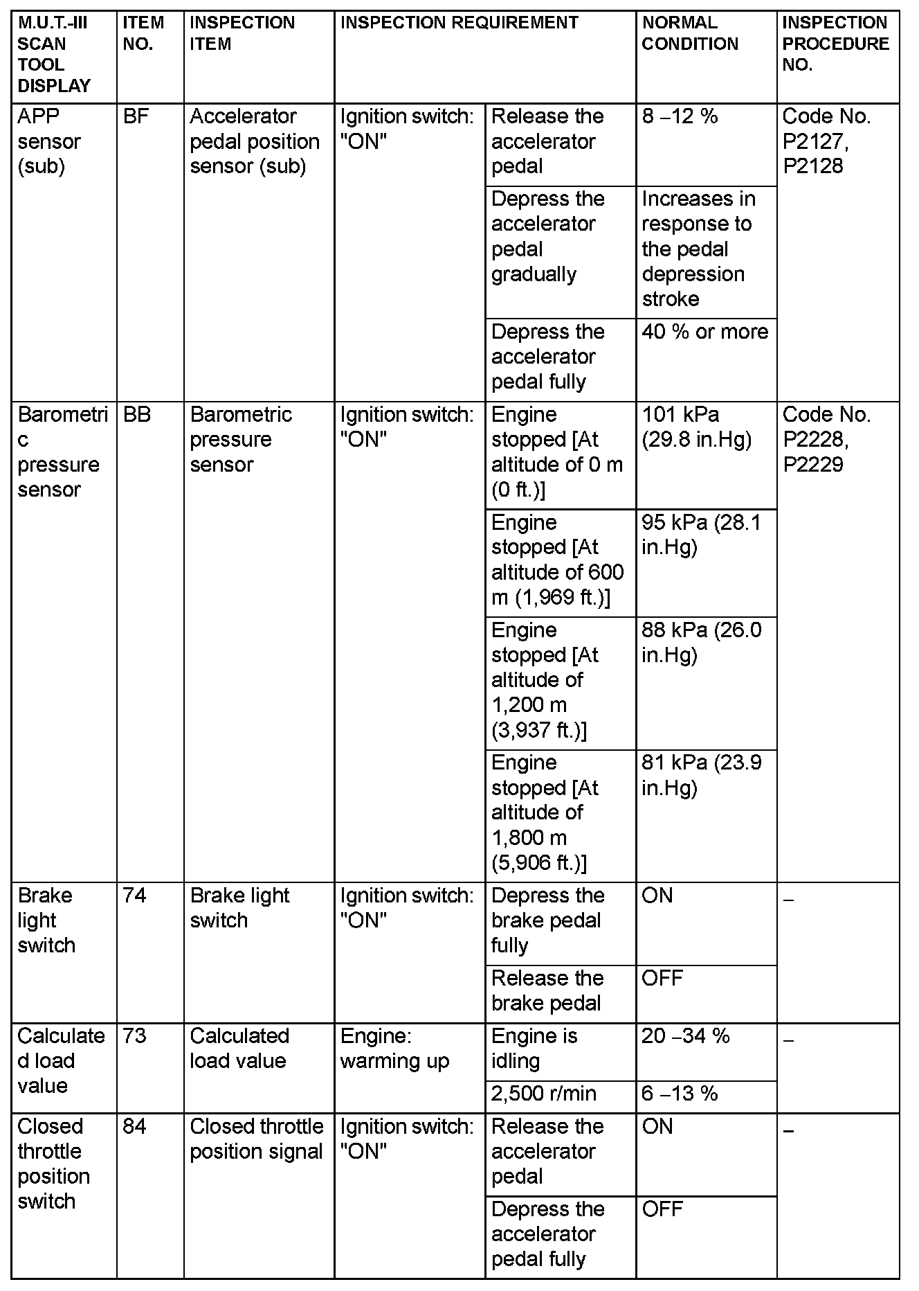 - *5: Data items are displayed on scan tool display, but the in-line 4 engine is not applicable and its data is displayed as "N/A".