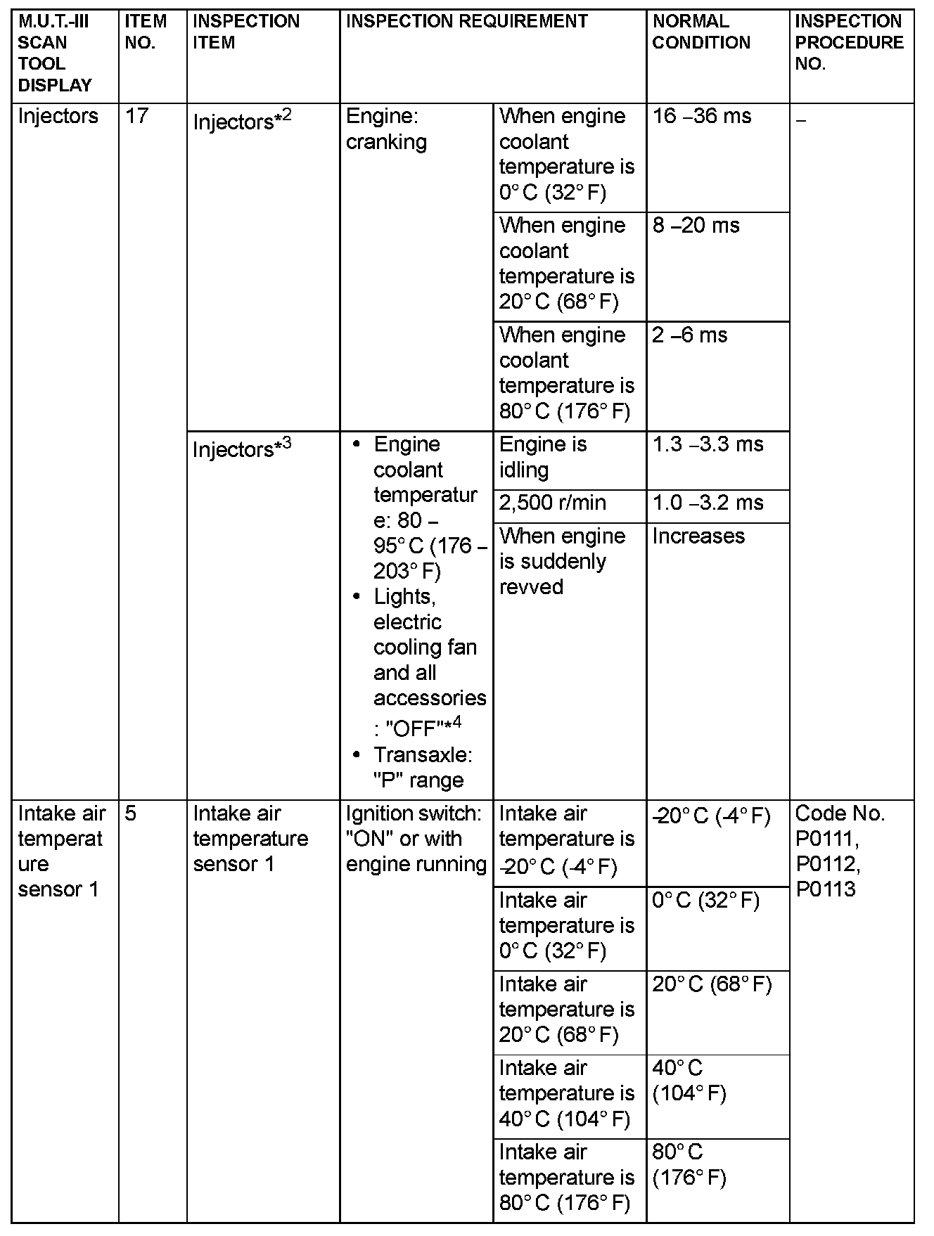 - *3: In a new vehicle [driven approximately 500 km (311 mile) or less], the injector drive time is sometimes 10% longer than the standard time.