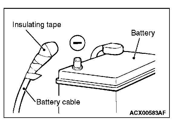 Disconnect the negative (-) battery cable from the battery and tape the terminal to prevent accidental connection and air bag deployment.