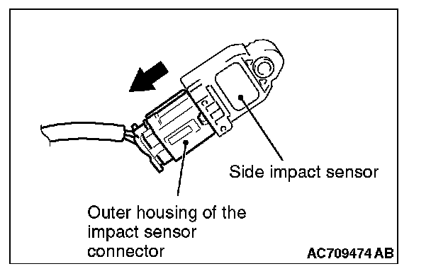 Slide the outer housing of the impact sensor connector in the arrow direction shown, and disconnect the connector.