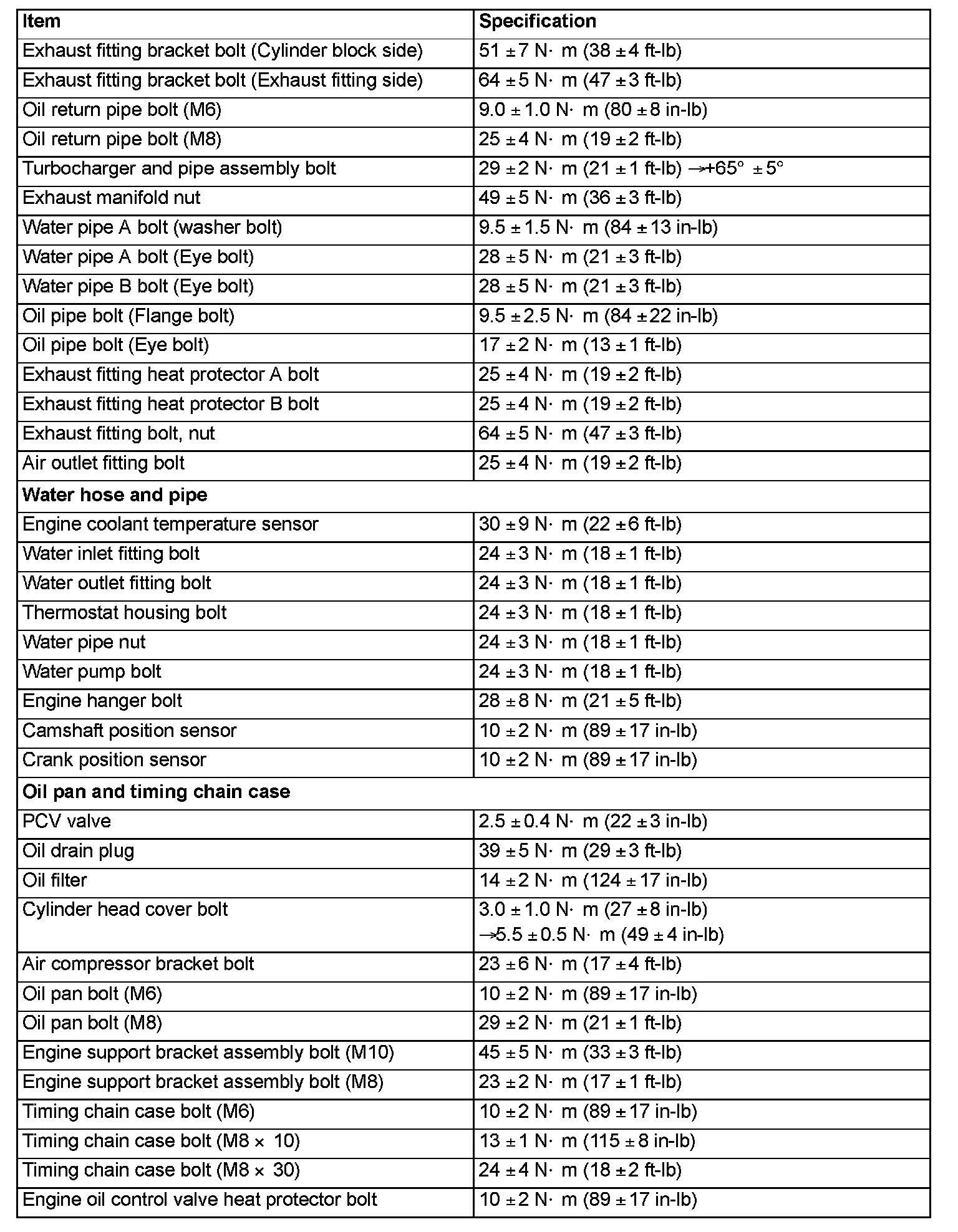 Fastener Tightening Specifications