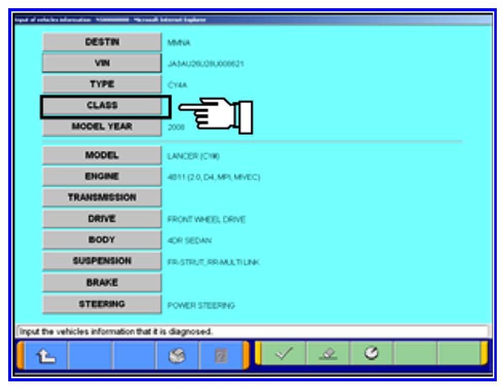 8. If the vehicle class is not complete click the CLASS button.