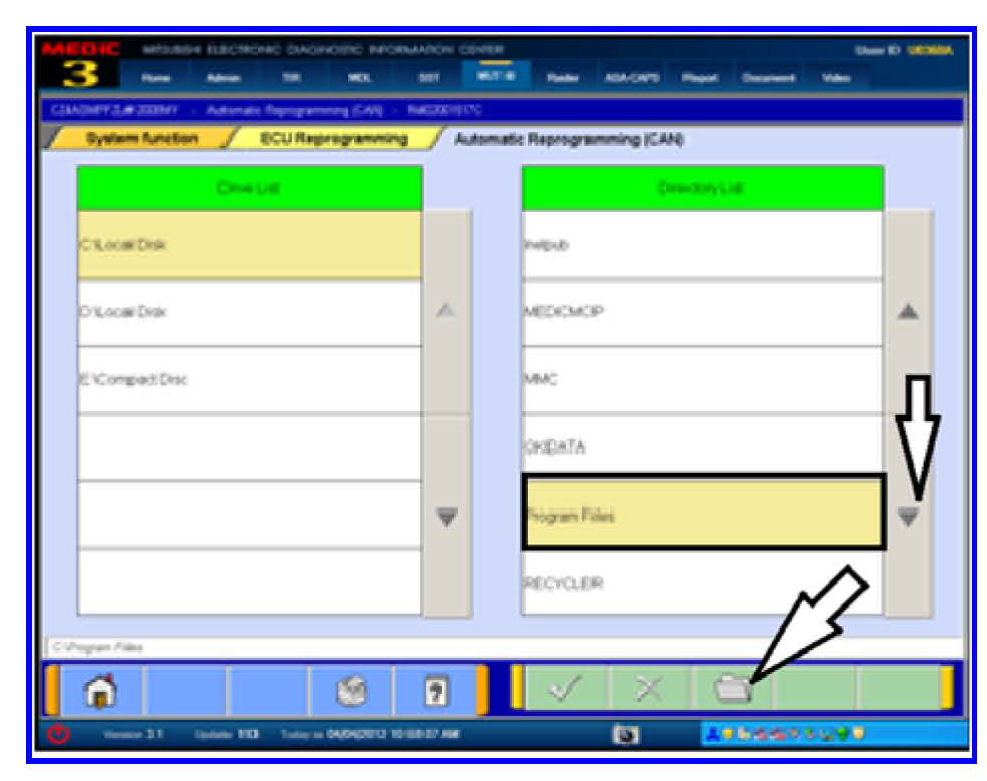 9. Select Program Files and click the file folder icon at the bottom of the screen.