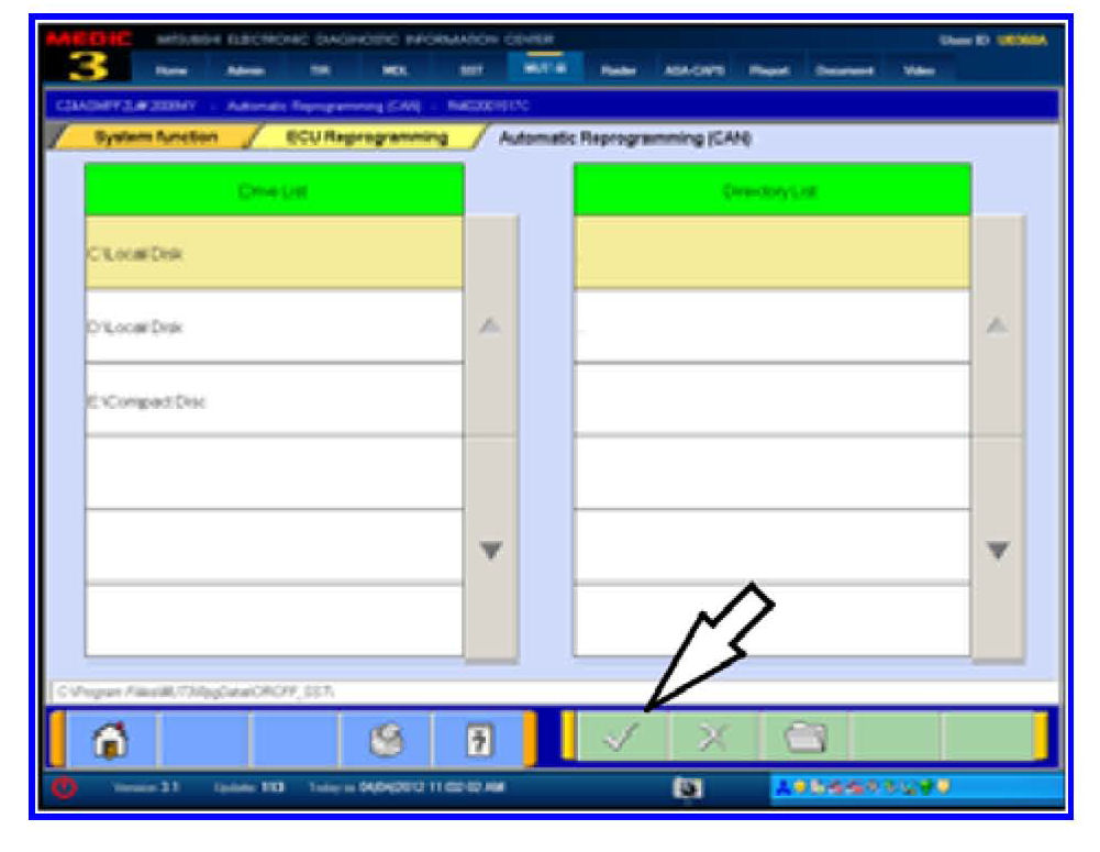 If the vehicle is a 2008 Lancer Evolution, install 8631B001.cff instead of 8631A749.