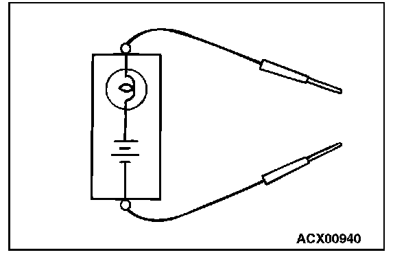 A test light consists of a 12V bulb and lead wires. It is used to check voltages or short circuits.