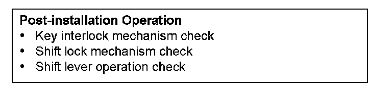 When the transaxle control cable is disconnected, check after the installation that the cable is properly connected, and that the parking lock mechanism operates normally. At this time, do not check by simply using the display on the combination meter and shift indicator panel. Always check according to the procedure below.
